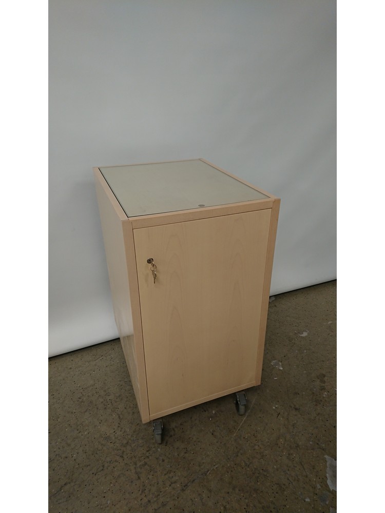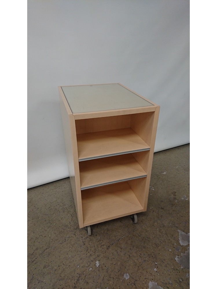 Esittelytaso+kaapisto pyörillä, koivu