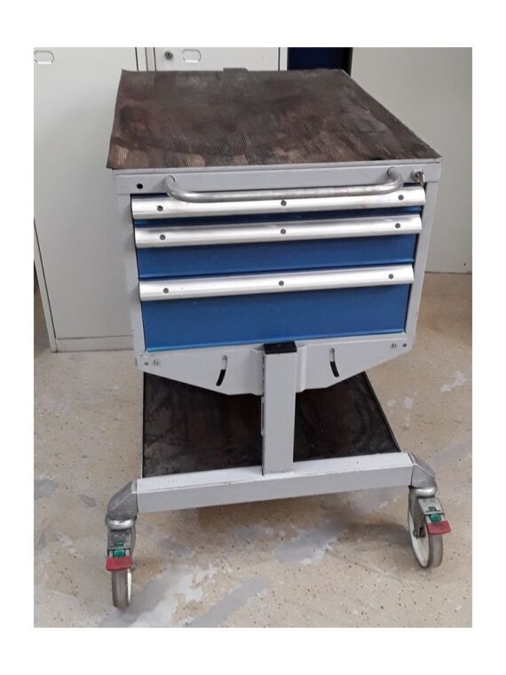 Käytetty metallinen asennusvaunu pyörillä teollisuus-ja korjaamokäyttöön.