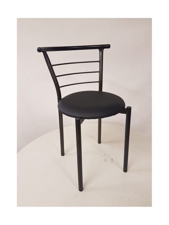 Tuolin istuinosa uudelleen verhoiltu: musta keinonahka (palosuojattu, julkitilakäyttöön).