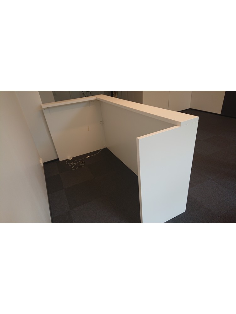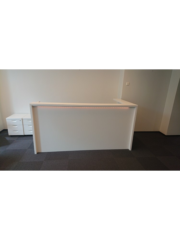 Kulmanmallinen vastaanottotiski ja työpiste.
