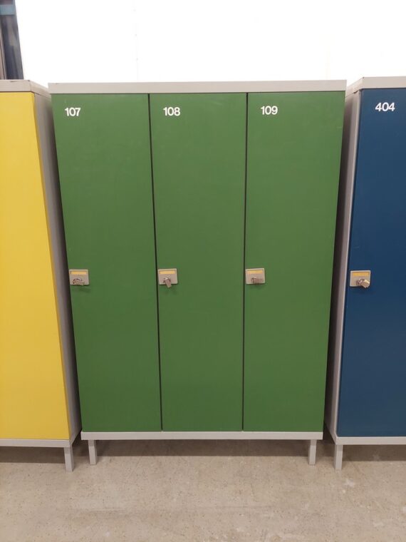 Käytetty metallinen pukukaappi, 3-oven sarja.