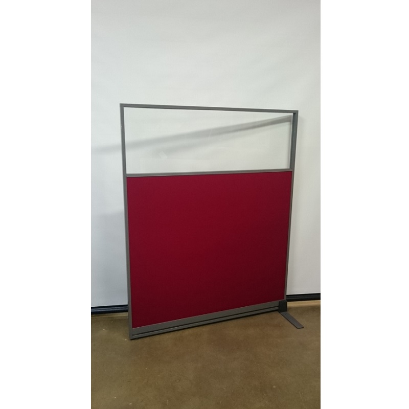 Punainen kangas, kirkas lasinen yläosa ja harmaa alumiinirunko, voidaan kiinnittää nuppineuloja.