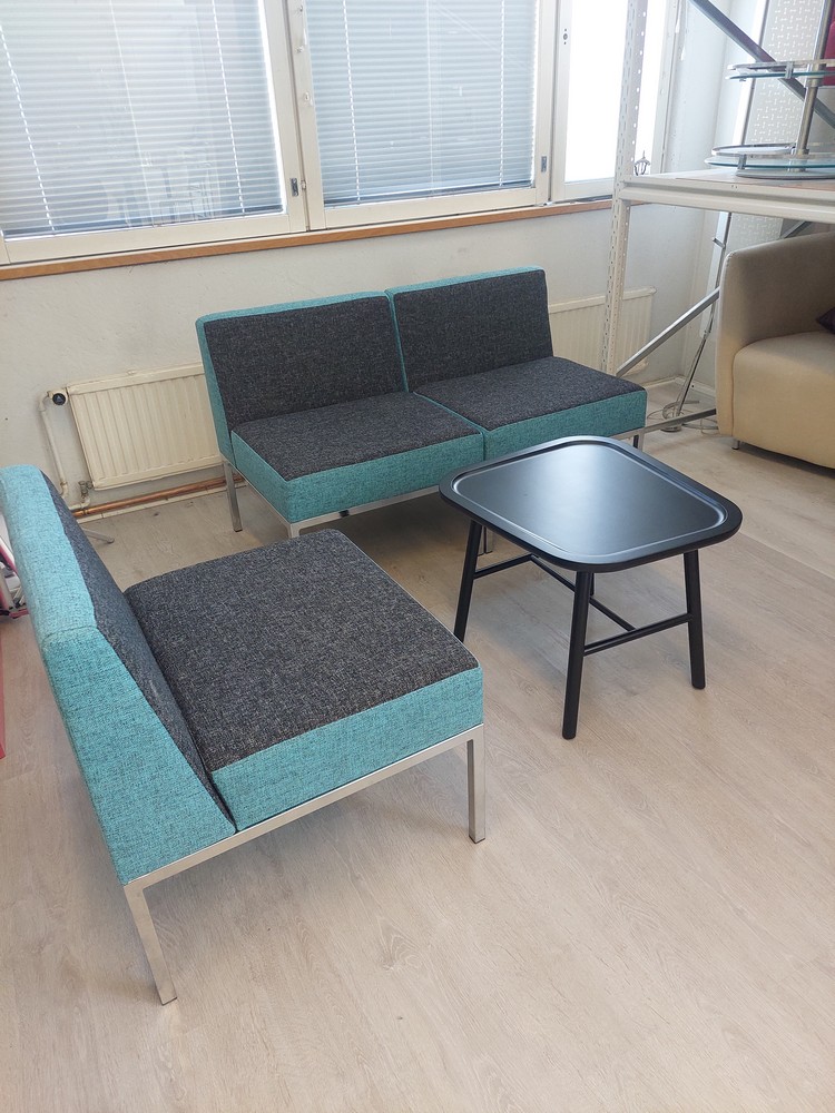Väri: Tummanharmaa/turkoosi(meleerattu) villakangasverhoilu,