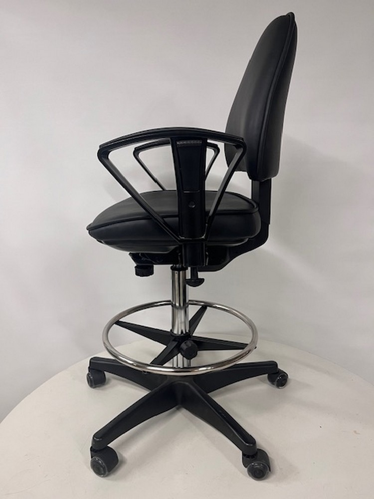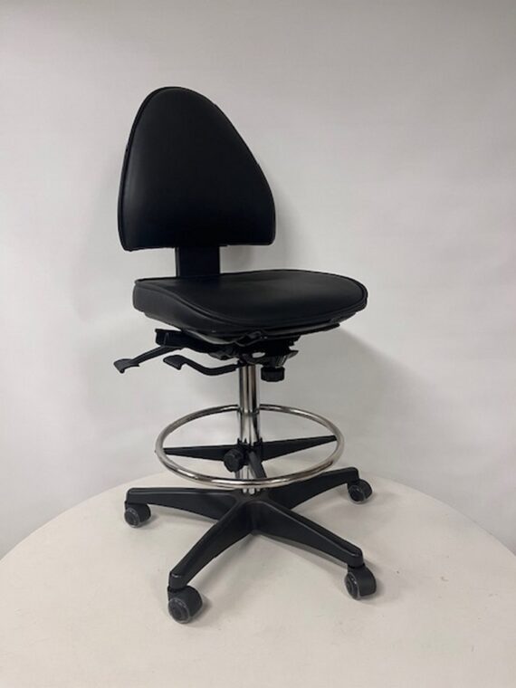 Korkea työtuoli pyörillä, soveltuu mm.kassatyöskentelyyn tai teollisuuskäyttöön.