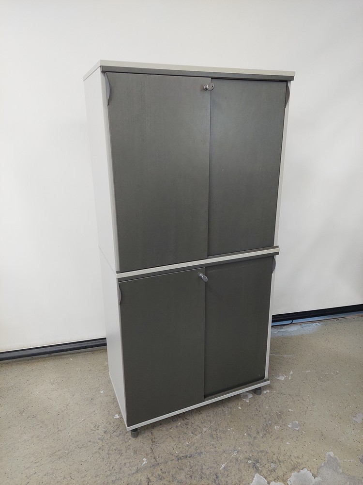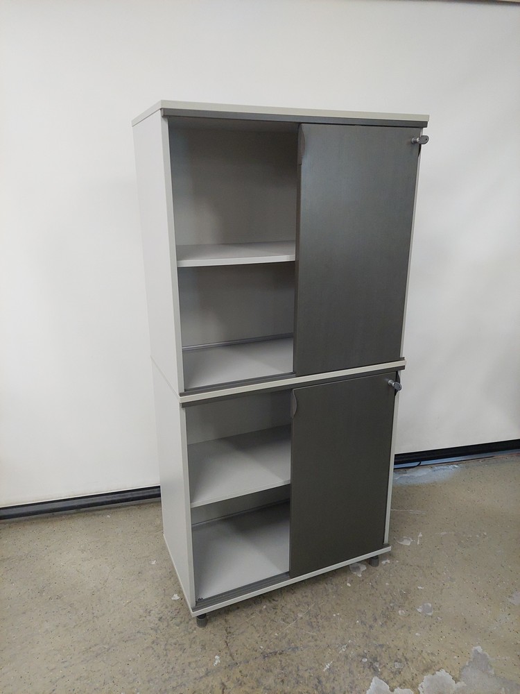Tummanharmaa petsattu ovi/vaaleanharmaa runko.