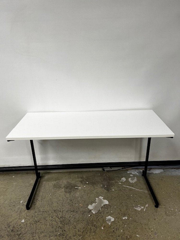 Kulutusta kestävä valkoinen laminaattikansilevy /musta teräsrunko.